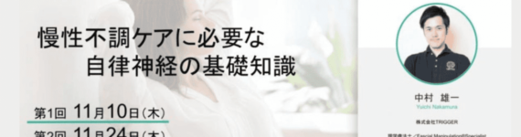 こちらのセミナーは「encounter」様の主催セミナーです。 講師を弊社中村が務めさせていただきます。 お問い合わせは、encounter様へお願いいたします。 第1回:臨床につなげる自律神経の基礎知識 … 続きを読む 慢性不調ケアに必要な自律神経の基礎知識